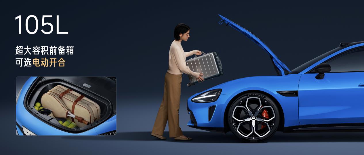 值得一提的是,新一代SU7全系标配电动前备箱,容积为105L,支持车外实体按键、中控大屏、小米汽车APP、小米汽车APP小部件、遥控钥匙、UWB近场控车、车内小爱语音、车外小爱语音8种开启方式,使用便利性有所提升。