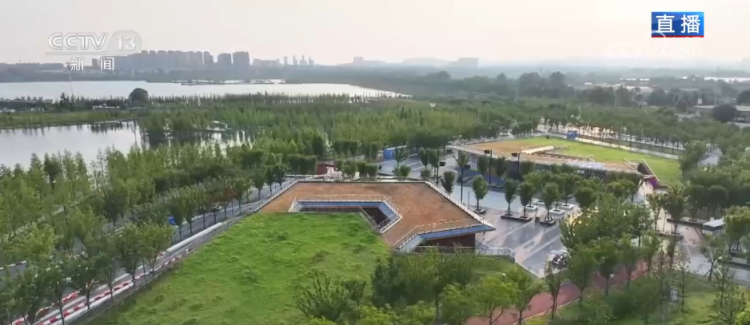 这两天刚刚经历了一场降雨,温度有所下降,站在湖边,被湖风轻抚,非常舒适、惬意。这座公园占地1万多亩,曾是地表沉降、水体污染的采煤沉陷区。而如今,这里种植的4万多棵落羽杉、榉树等,以及13.5万平方米的草坪,让公园绿意十足,一片夏日好风光。
