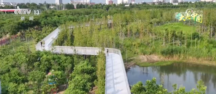 此外,为了满足全年龄段游客的不同需求,公园里还设计了湖塘生态、田园休闲、都市绿廊等六大分区。比如通过空中栈桥、人行步道、亲水栈道、水上游线四级交通系统,可以让游客全方位地领略这座生态公园的美景。在步道边,十几头梅花鹿在绿荫下与游客亲密互动,游客既可以亲手投喂,也可以拍照合影,感受着人与自然的和谐。在田园休闲区,这几天早熟的梨子挂满了枝头,游客可以在这里体验采摘的乐趣。而盛夏时节,最让小朋友感兴趣的则是这里的摸鱼摸虾区了,可以手拿网兜,享受追逐鱼虾的欢乐。过去大家都不愿意靠近的烂泥潭,在精心打造下,成为了绿色转型、综合治理后的民生工程。