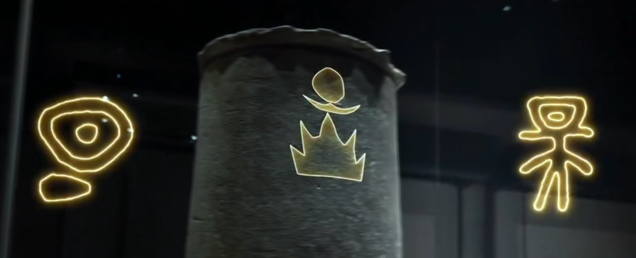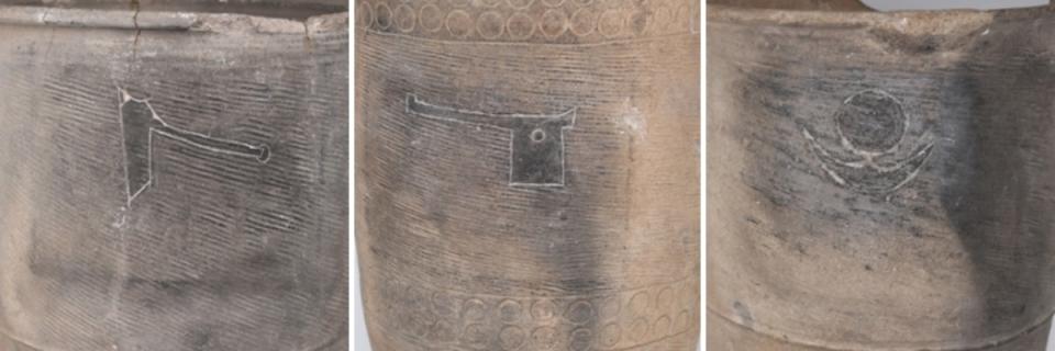 △安徽蒙城尉迟寺遗址出土的大口陶尊刻画符号(图片