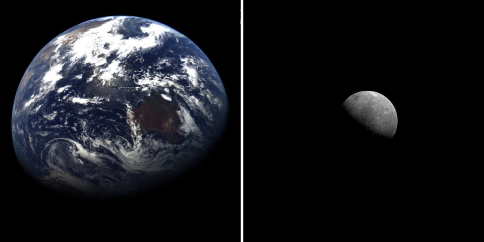 △今年7月初公布的天问二号探测器在轨拍摄的地月影像图。